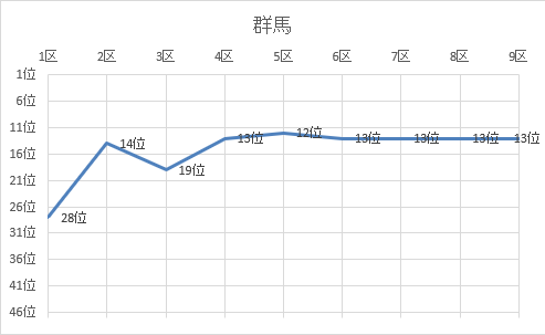 | 7区 | 4.0㎞ | 0:13:29 | 小林 璃々 | 富岡東高 | 32位 | 1:40:46 | 40位 |