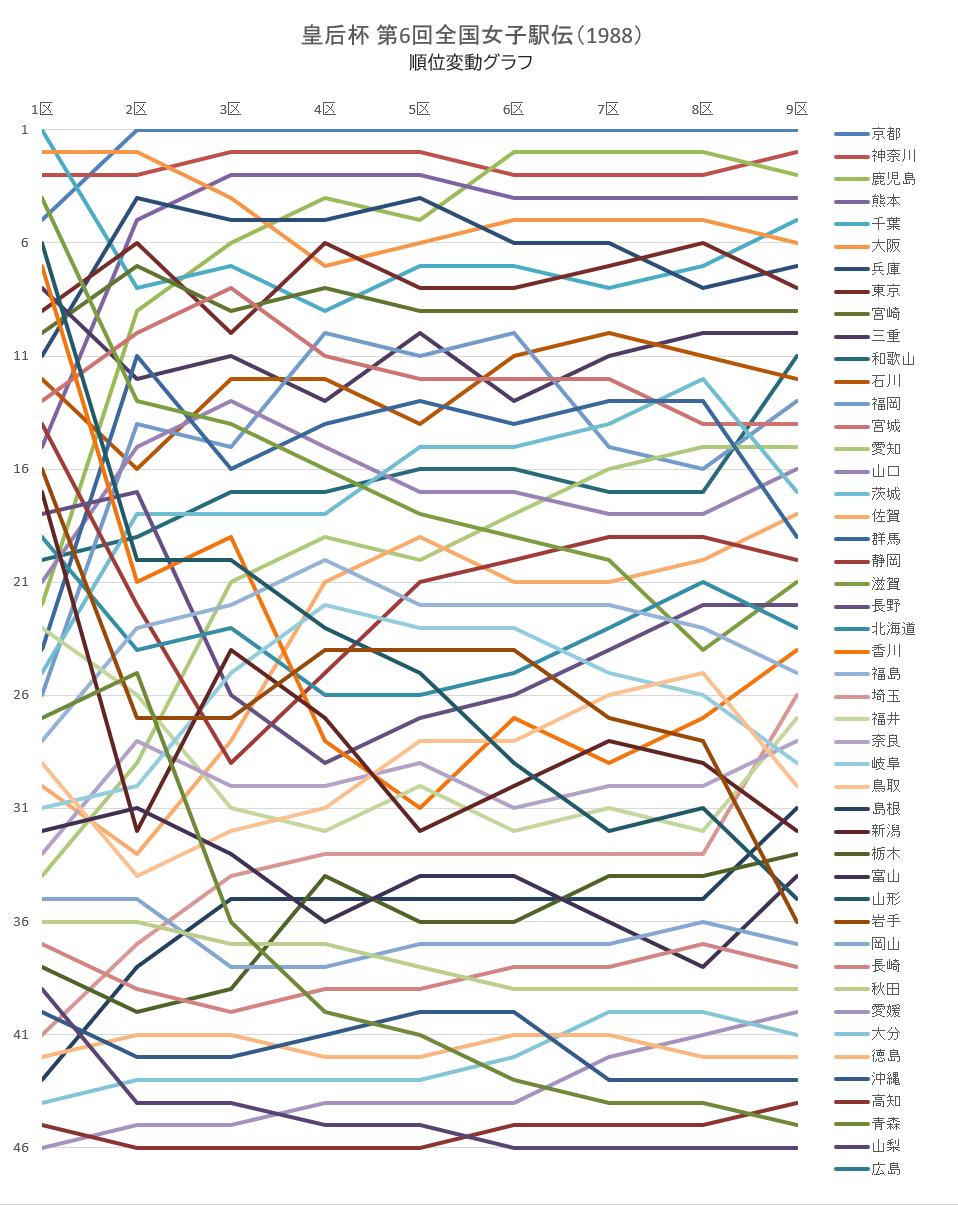 皇后杯第6回都道府県女子駅伝(1988)の結果、記録