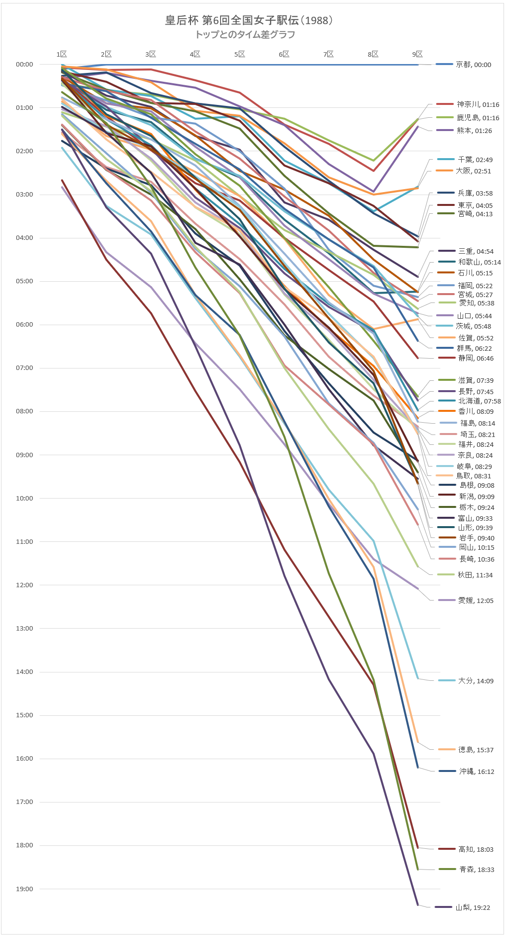 | 7 | 兵庫 | 00:16 | 00:11 | 00:40 | 00:54 | 01:01 | 01:54 | 02:41 | 03:26 | 03:58 |