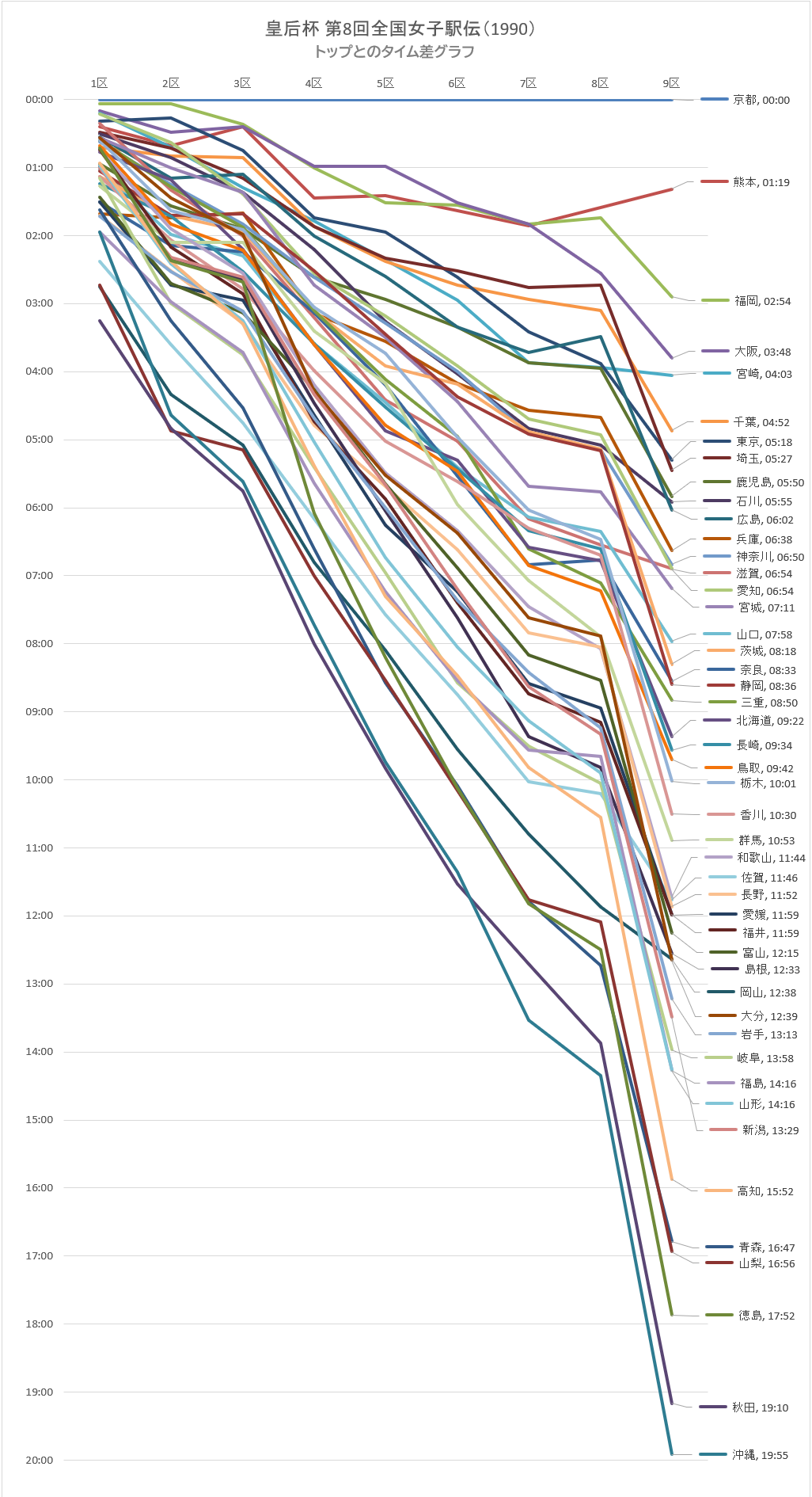皇后杯第8回都道府県女子駅伝(1990)の結果、記録