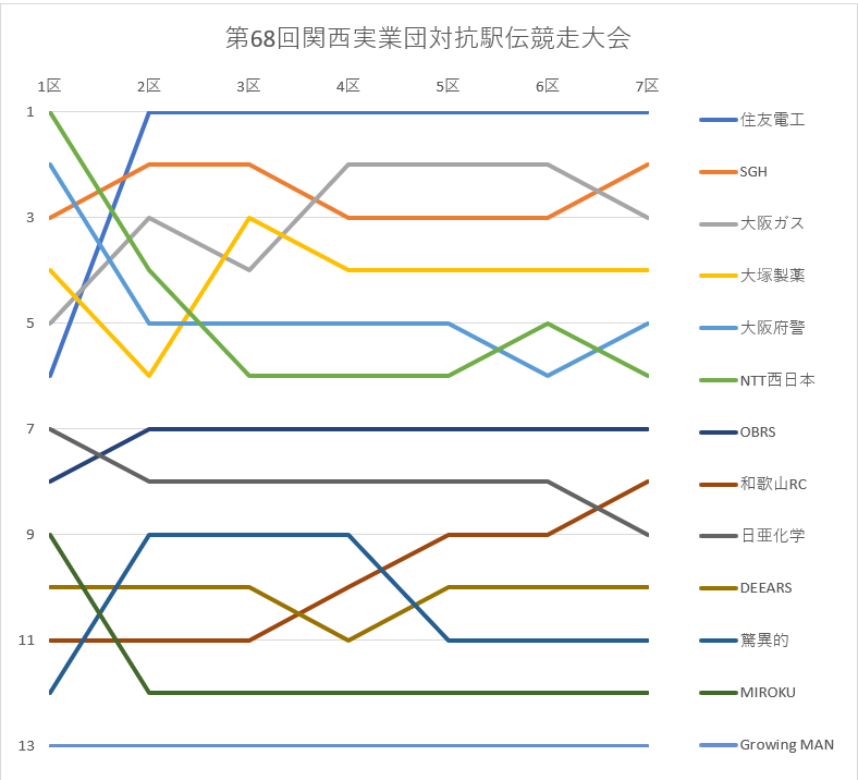 | 4 | 1:31:57 | 3 | 大阪ガス | 山中 博生 | 0:30:39 | 5 | 3→4 | ↓1 |