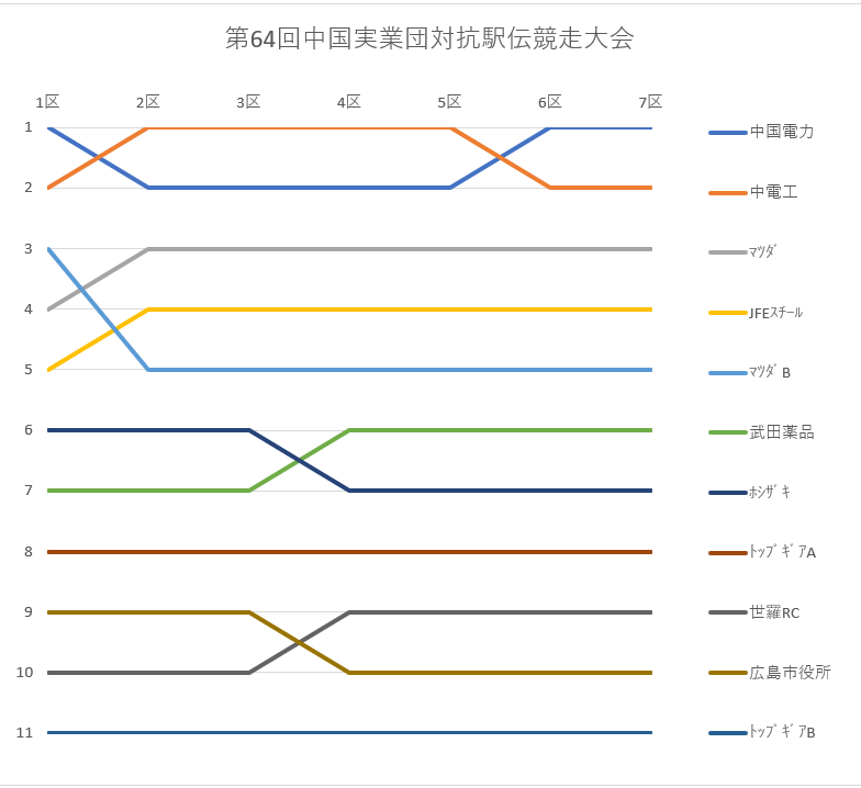 | チーム | 1区 | 2区 | 3区 | 4区 | 5区 | 6区 | 7区 |