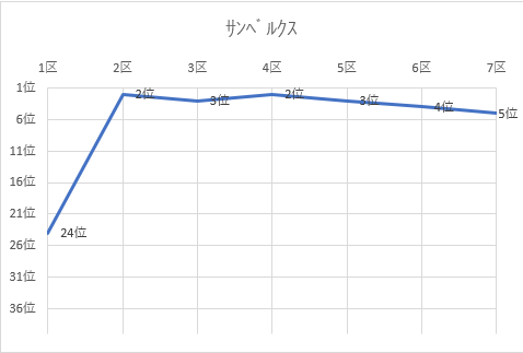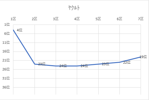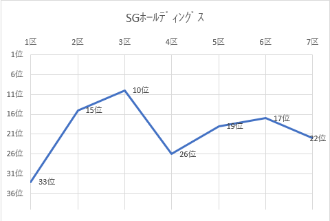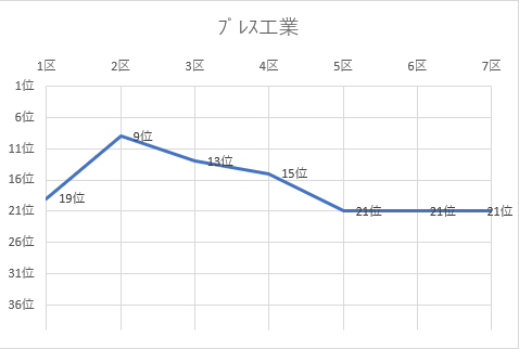 (実業団別結果、順位推移グラフ)